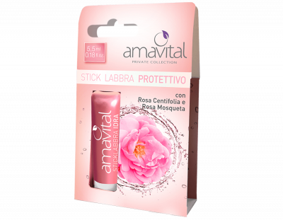 Qui nella foto c’è lo stick labbra Protettivo ideale per labbra sensibili al freddo e agli agenti atmosferici, contiene Acido Ialuronico per un’idratazione ottimale, Cera di Rosa protettiva ed emolliente, e olio di Rosa Mosqueta ad azione calmante e addolcente.