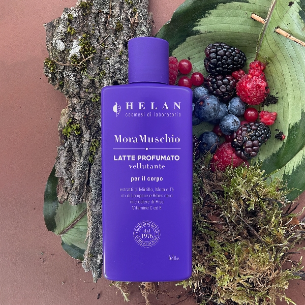 Regala alla tua pelle un tocco di pura morbidezza con il Latte Corpo Mora Muschio di Helan.