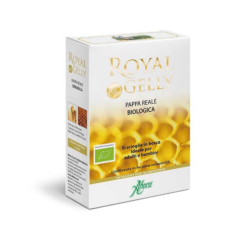Dalla Pappa Reale fresca certificata con Metodo di Produzione Biologico, Aboca ottiene Royal Gelly Bio orosolubile, un integratore formulato con Pappa Reale liofilizzata che assicura il mantenimento delle proprietà originarie della Pappa Reale fresca e la stabilità del prodotto senza la necessità di conservazione in frigorifero.