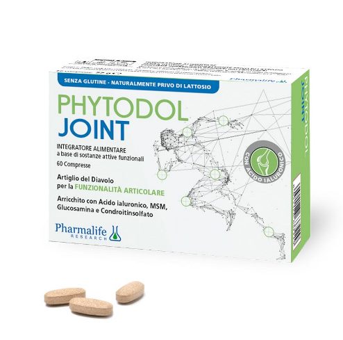 Phytodol Joint è un innovativo integratore alimentare a base di glucosamina, metilsulfonilmetano e condroitinsolfato, arricchito con acido ialuronico e artiglio del diavolo, utile come supporto per il benessere delle articolazioni.